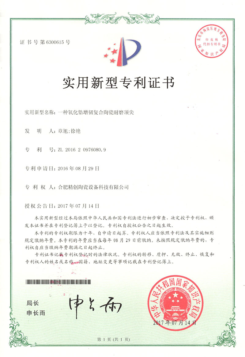 (2017實用新型)一種氧化鋯增韌復(fù)合陶瓷耐磨頂尖